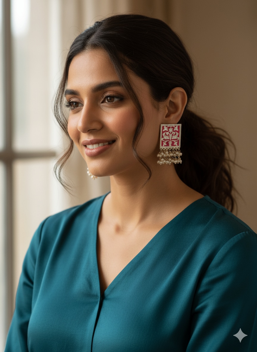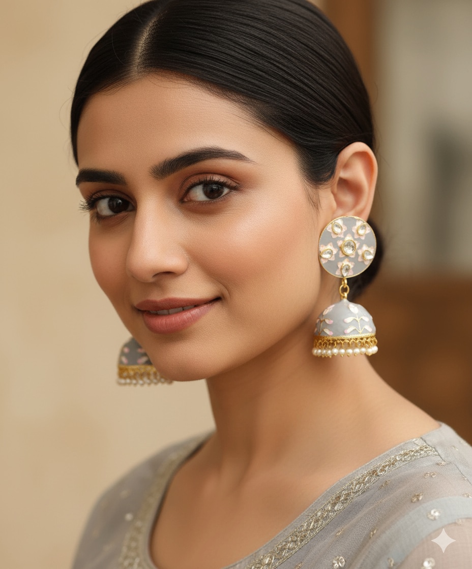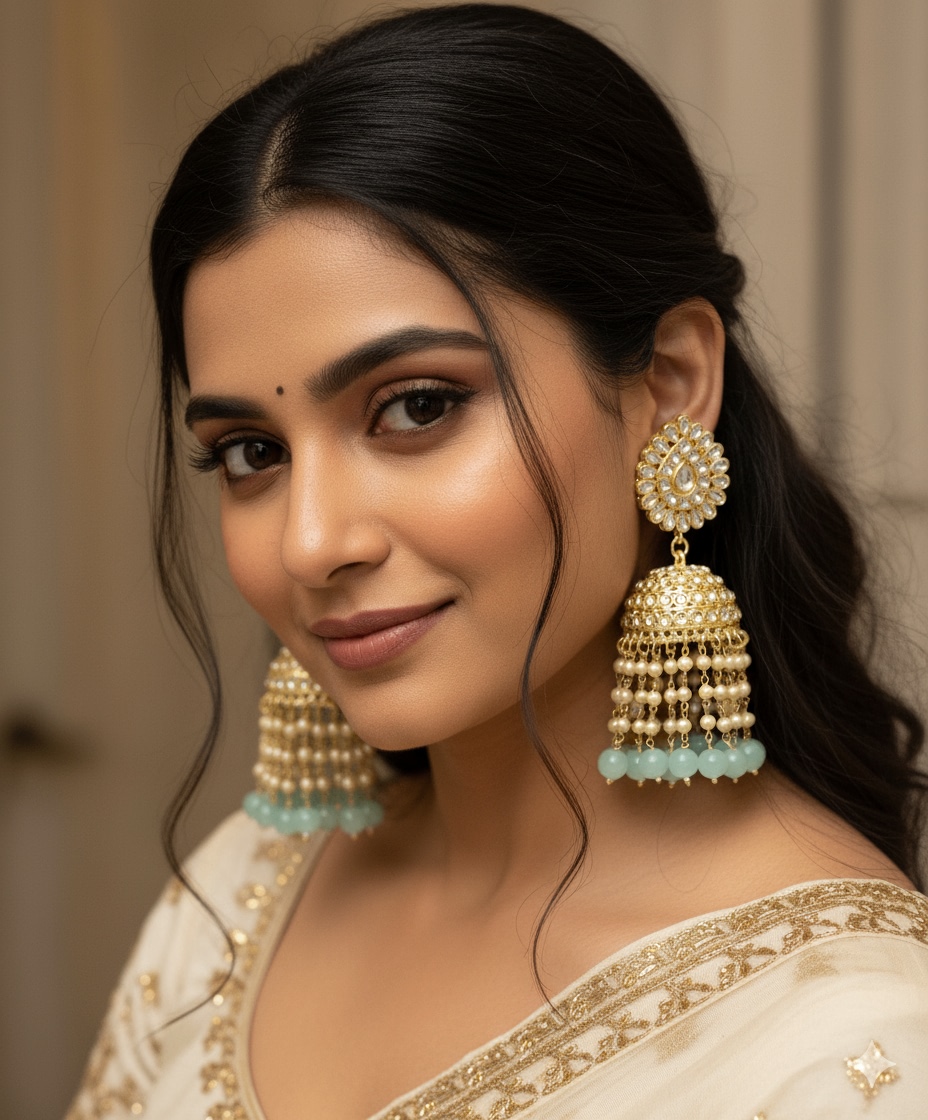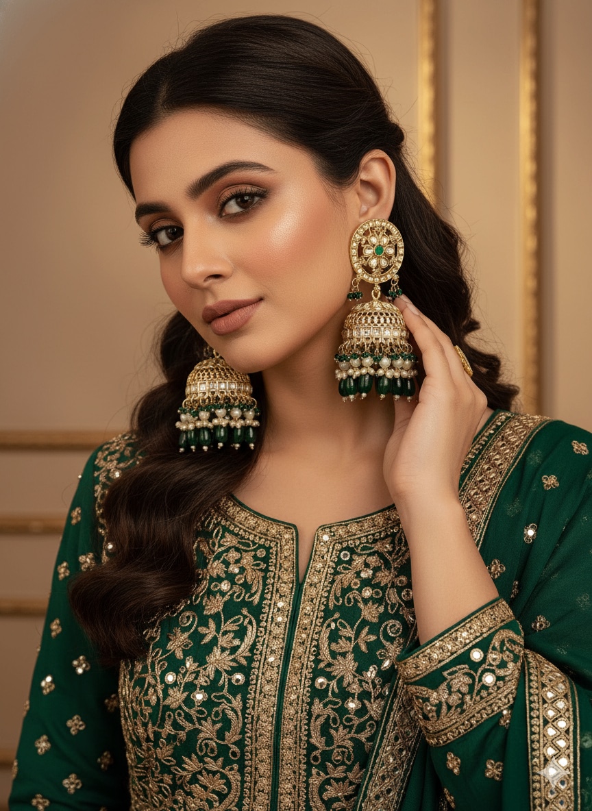 Exclusive Kashmiri Pachi Kundan Moissanite Stones Jhumka Earrings Set