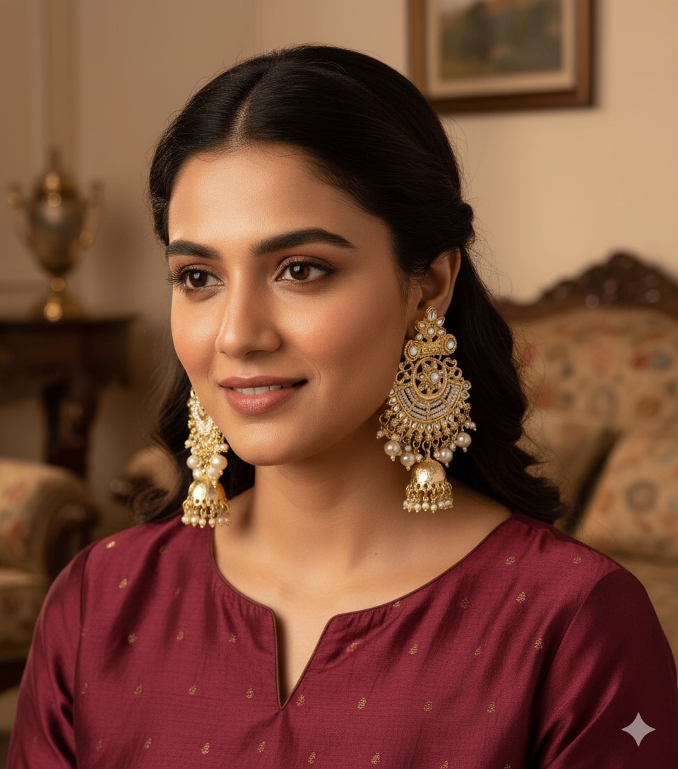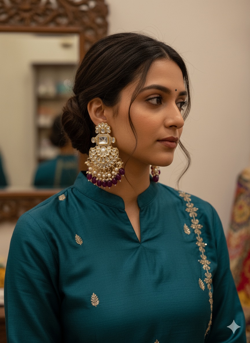 Beautiful Indo Western Kundan Pearls Earrings Set