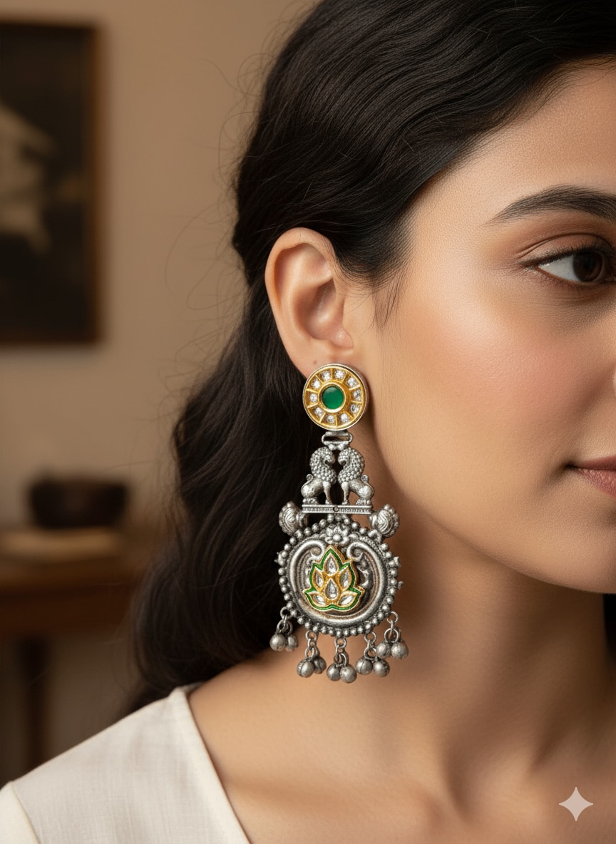 Green Moissanite Stones Beautiful Long Kashmiri Ghungroo Earrings Set