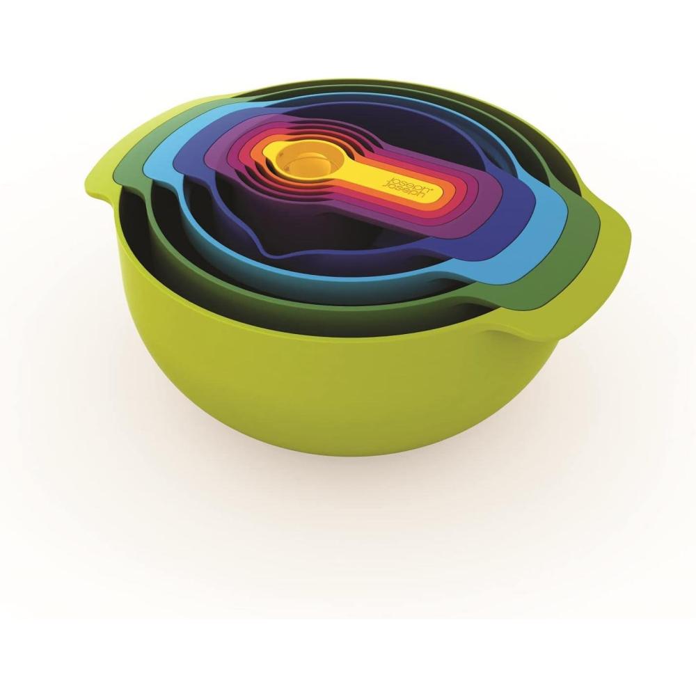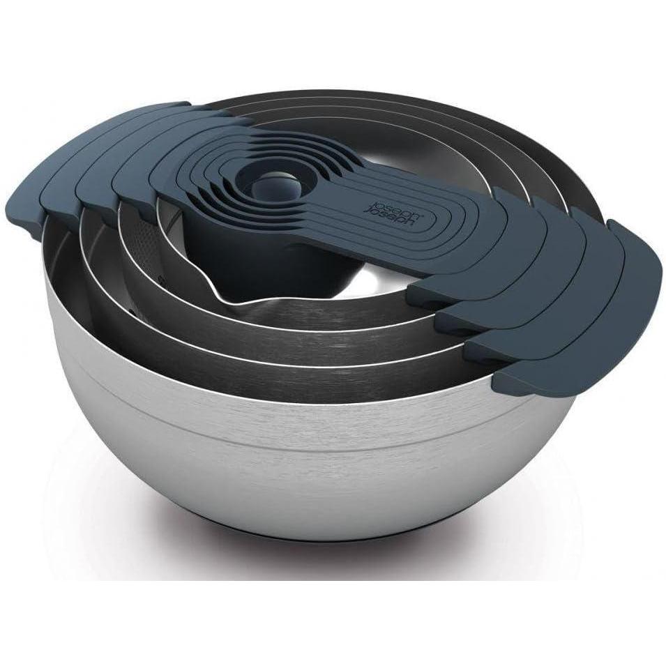 Joseph Joseph Nest 9 Plus, 9 Piece Compact Food Preparation Set with Mixing Bowls, Measuring Cups, Sieve and Colander, Stainless Steel(Multicolour)