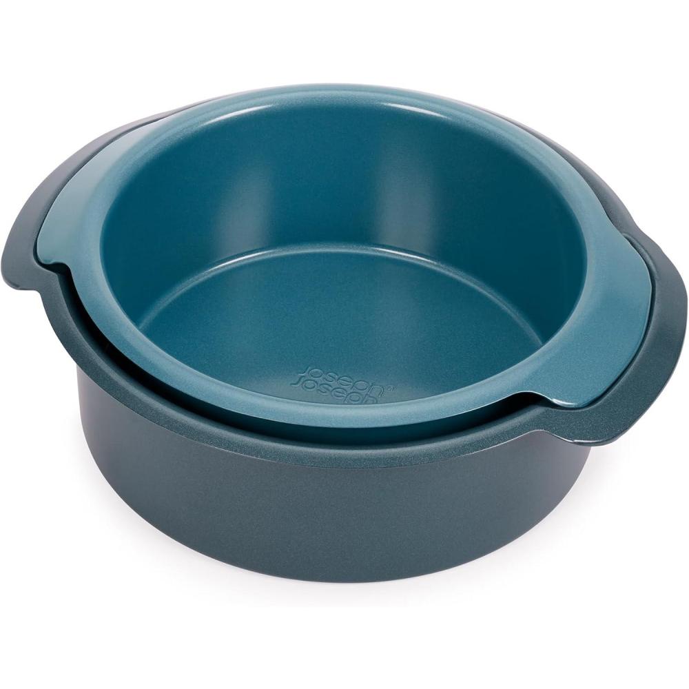 Joseph Joseph Nest™ Bake Set of 2 Non-Stick Round Cake Pan, 9in & 7.8in, Carbon Steel, Easy-Pull Handles, Stackable, Space-Saving Design, 10-Year Guarantee(Cake)
