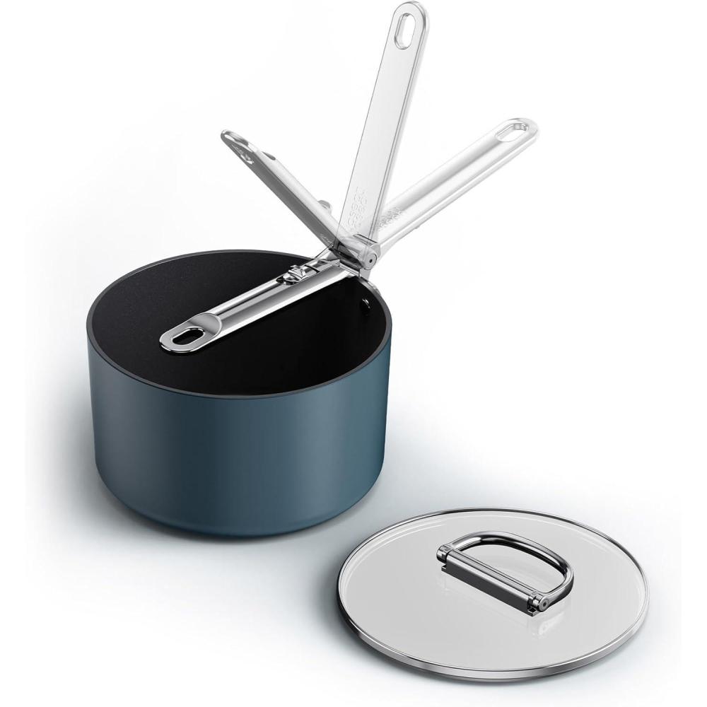 CAROTE 11-Piece Ceramic Cookware Set: Non-stick, PFAS-free, induction-compatible with saucepans. Healthy and stylish kitchen set.