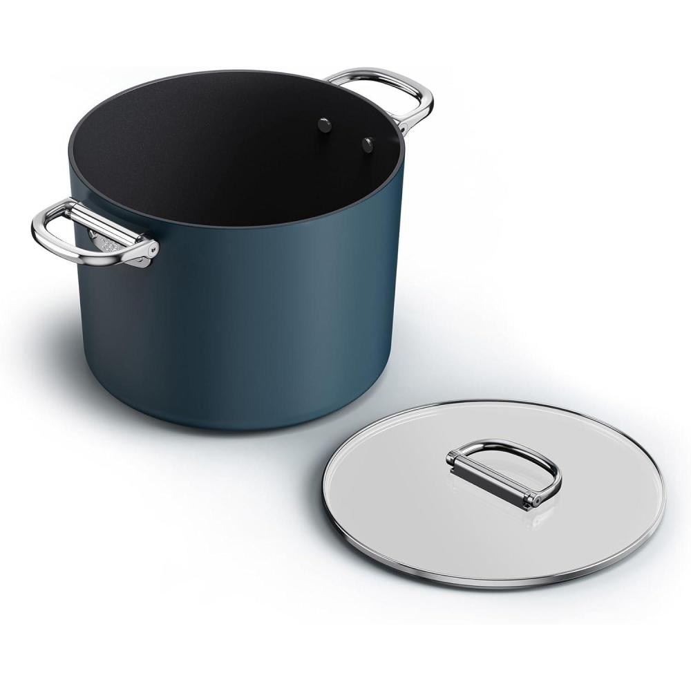 Cook N Home 10-piece ceramic nonstick cookware set: includes pots, pans, Dutch oven, saucepans, and lids in vibrant turquoise