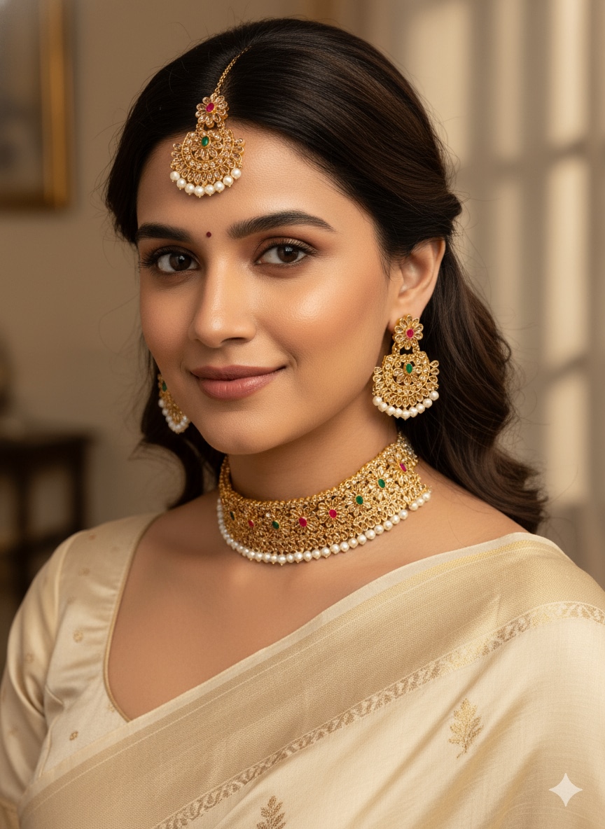 Rseverse AD Kundan Pearls Beautiful Choker Jewellery Set