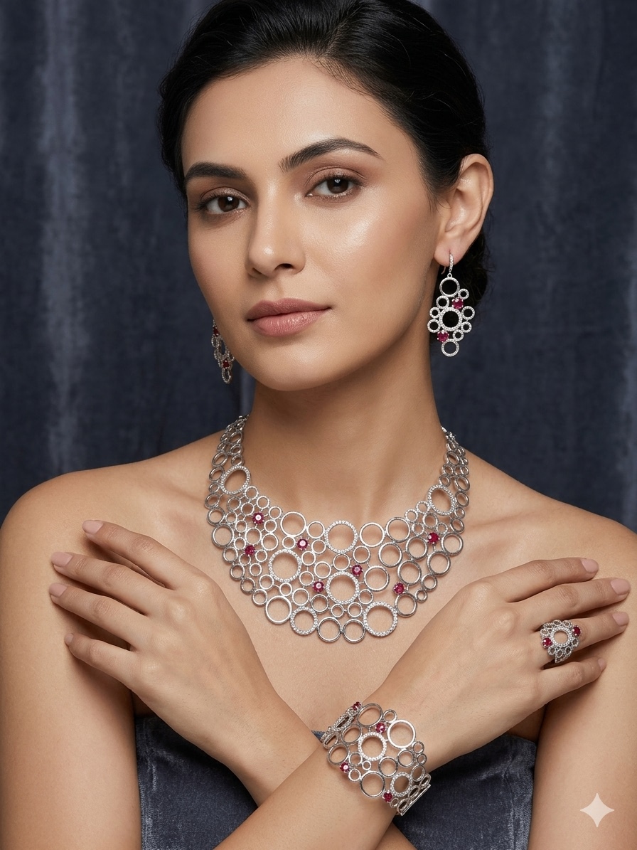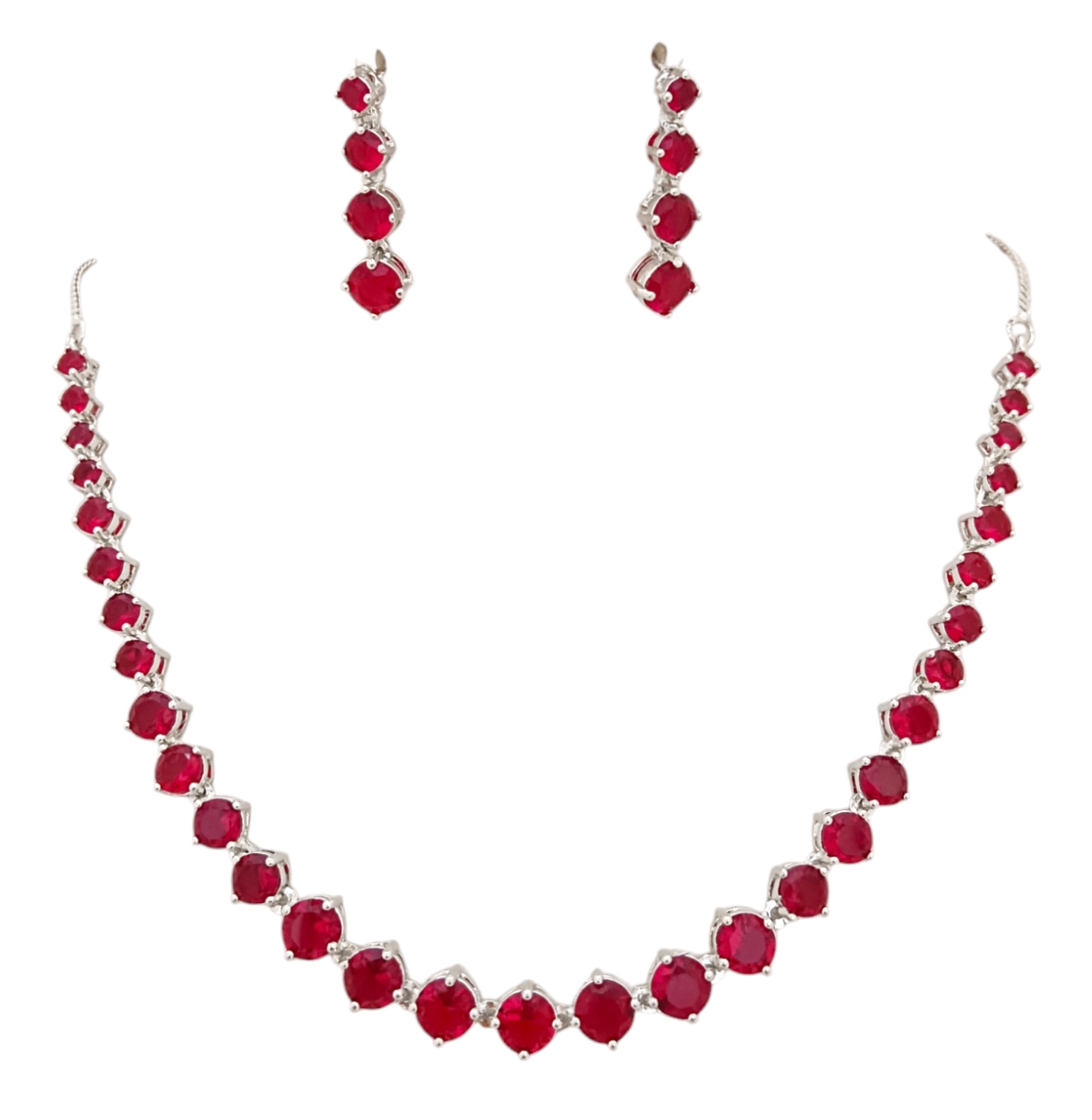 Bridal Red Ruby Single Line Awesome Jewellery Set