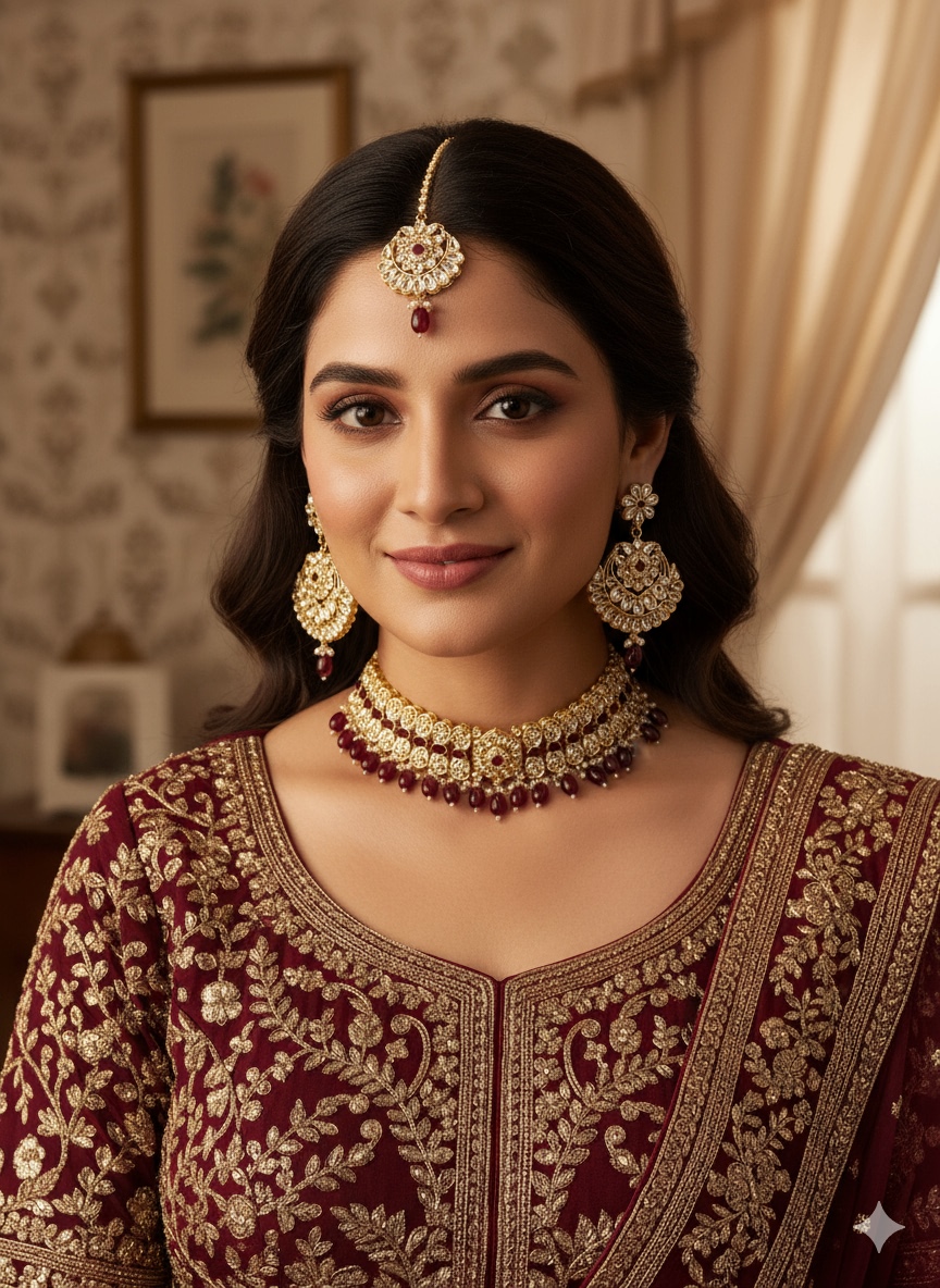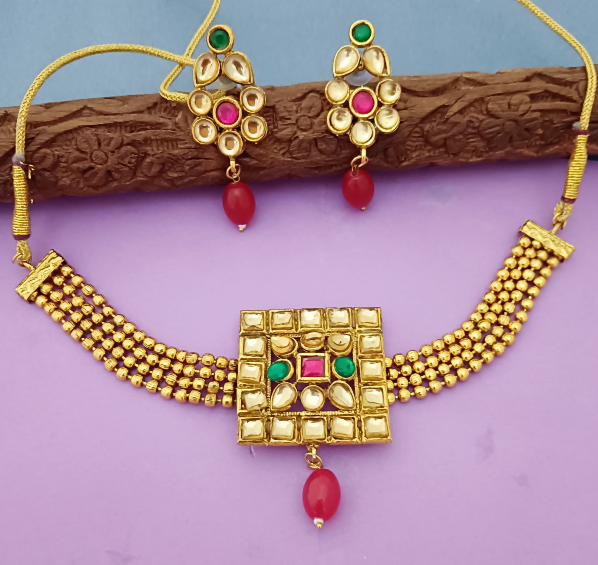 Bridal Red Golden Choker Jewellery Set