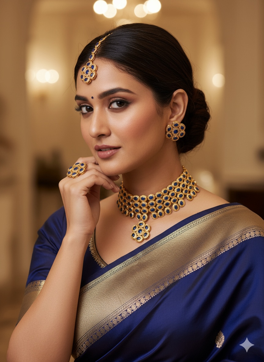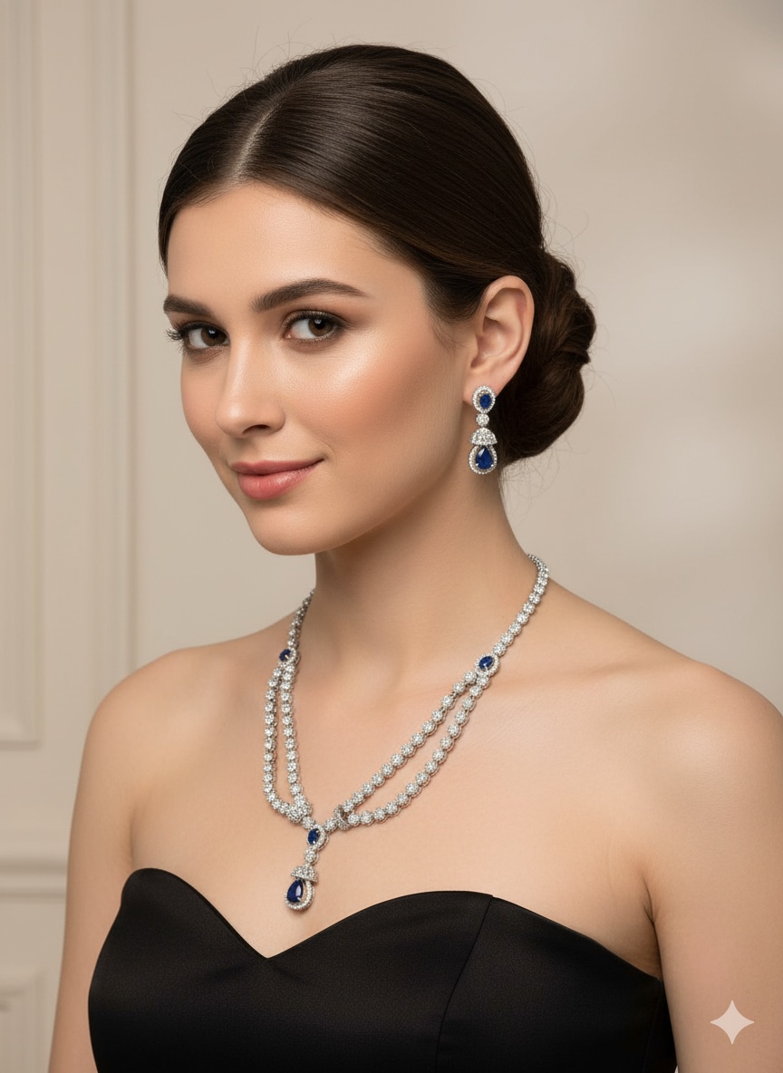 Blue Sapphire Single Line Awesome Jewellery Set