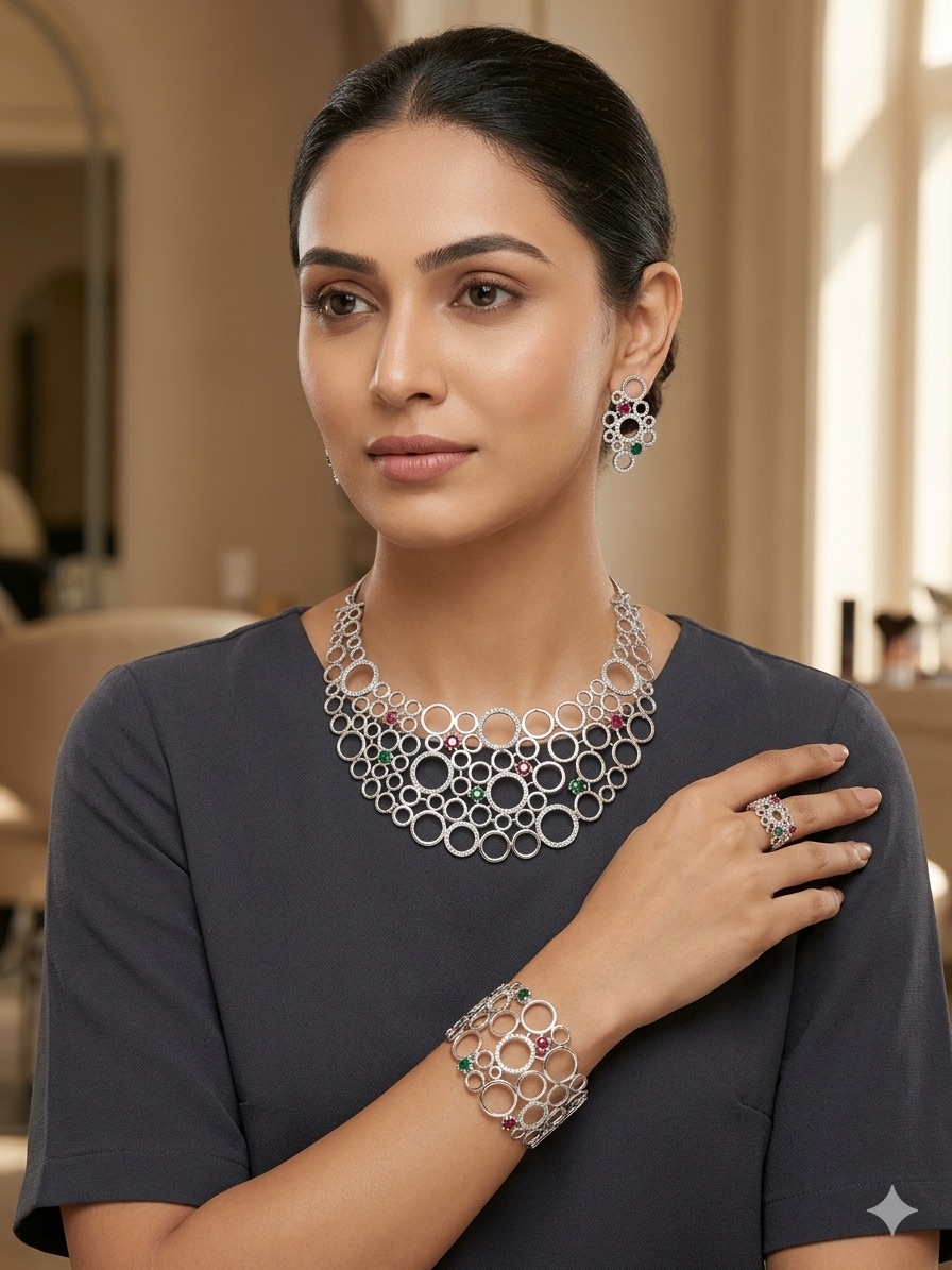 Indian Bollywood Celebrity Style CZ Stones Jewellery Set