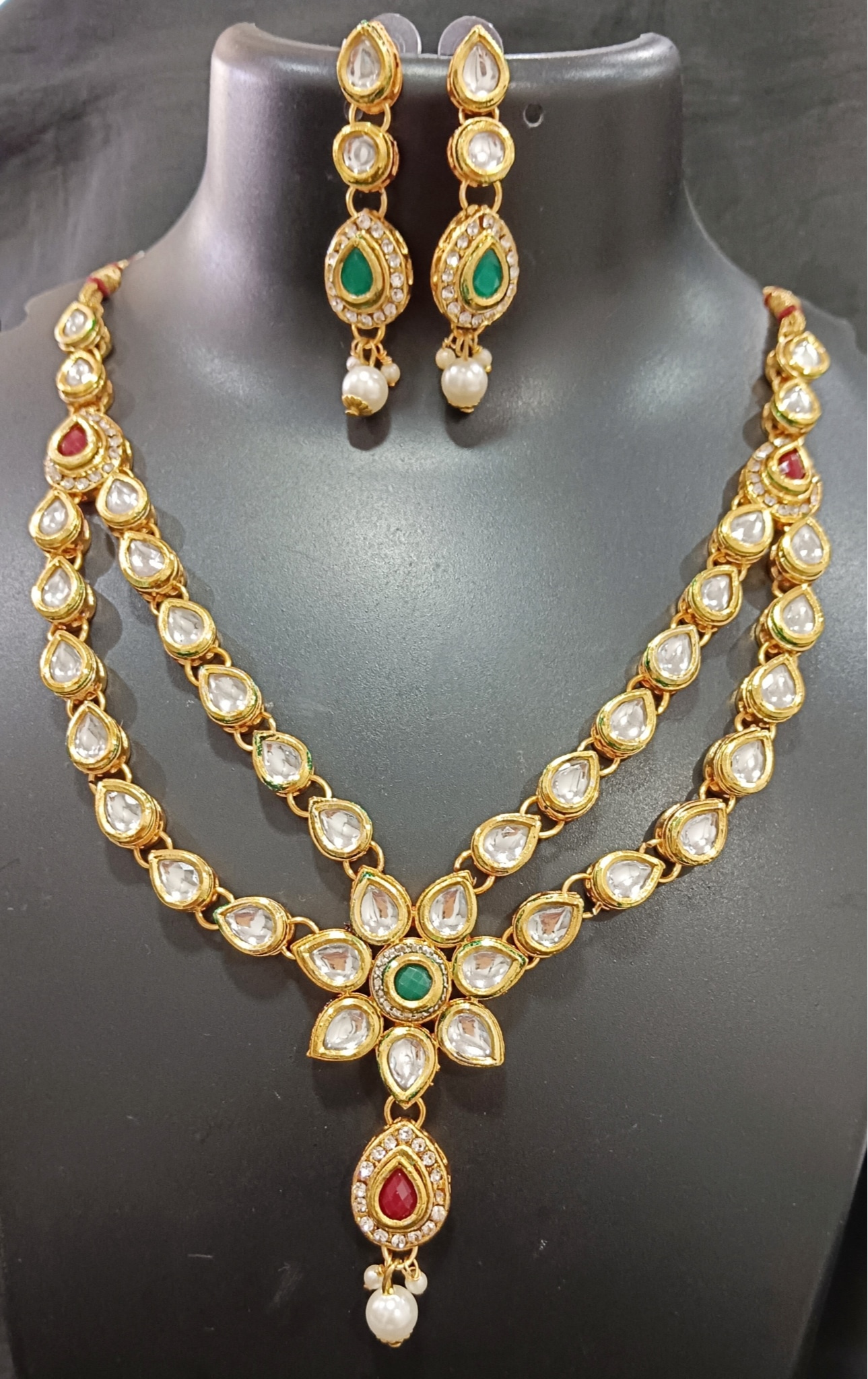 Beautiful Crystal Kundan CZ Long Jewellery Set